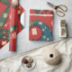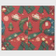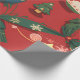 Det här är ett mönster med Juldekorationer bakgrund som gång på gång sätts på röd botten. Detta är pappert med bilder av olika julklappar som små gröntar Julgranar, rosett band, stjärnor, snöflingor, te kopp och krig. Den är papper med en övergripande varm och mysigt känsla, skapar den en bra som är lämplig för inslagning av julklappar.