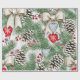 Papper julomslutning med gräs-koner, bokor, hullbär, hjärtan, snöflingor. Snygg julklapp i säsong som är papper för julsäsongen.