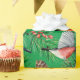 Festiv helgdag som omsluter papper har röda tjurfåglar med gräs-koner och evergreen grenar på gröntens bakgrund.