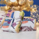 Papper julillustration. Julillustration med vattenfärgad hand. Berätta för din familj och dina vänner om din kärlek genom en ge inlindad gåva med detta inslagna papper. Utformningen är söt, kreativ med bra färg-schema med mistletoe, löv, prydnadsföremål, stjärnor och fågelklockor.