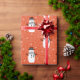 En söt vinter snögubbe med snöflingor på en röd bakgrund dekorerar denna pappra julomslutning. En enkel, roligt mönster för ert Helgdag. Finns i andra färg. Designad av Blackberry Boulevard.