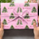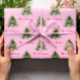 Denna pappra julomslutning har en vacker vattenfärgsillustration av gräs träd, som har enkla och elegant röda dekorationer. Det skapar ett modernt, minimalistiskt mönster i ljus rosa bakgrund.