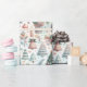 Dekorativt inslagna pappra inslag i en rad charmerande helgdag, inklusive träd, ljus, prydnadsföremål och polkagrisar, skapande en glatt perfekt för julstämning för presenter.