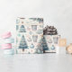 Fintvätt mönster av Julgranar, prydnadsföremål och festive inslag skapar en drömsinnesstämning, perfekt för inslagning av gåvor under julhelgen. Ett firande av färg och kreativiteten växer fram.