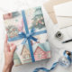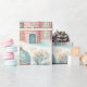 Den pappra inslagningen visar på ett ljust och glatt sätt på en underbar mängd julmotiv, inklusive dekorerat träd, färgstarka gåvor och charmeringshus. Det mjuka pastellet färg skapar en vismisk känsla, perfekt för julhelgen.