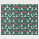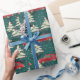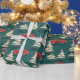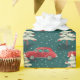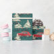 Ett härligt mönster med röda bilar som kör mellan snöande gräs träd, som är inkörda mot rikens grönt och som fångar julhelgens anda och glädje över presentens ge.