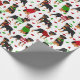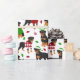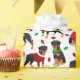 Hundar i jultomten i festliga helgdag. Rottweilers med svart och solbränna jackar polkagrisar, bära jultomtar, antlers, svettare med utspridda prydnadsföremål.