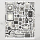 Dubbla-sidig skräpbok papper med vintage temat ephemera i vanlig svartvit konst för att hjälpa dig med dina utklippta och kollage pappra ritprojekt. Perfekt för alla typer av papperskorgar från skrapbokning till skräppostjournalföring.