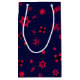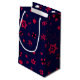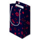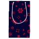 Papper liten mörk blått och röd presentsäck med små stjärnor och blommor i det geometriska stil för nyår eller jul