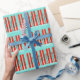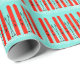 Papper ljusröd skis på blå bakgrundsförpackning presentpapper