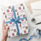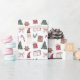 Vackert papper med färgade julmålade illustrationer, perfekt för att tillföra en festlig beröring till alla presenter.