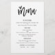Pappert Trendig Artsy Script Text Only Bröllop Menu. Ett PAPPERT alternativ för valuta för pengarna (inte kort) i storlek 5,5 x 8,5 tum med en informell uppsättning typografi i svartvitt och hjärtmotiv för huvudrubriken Menu som kompletterar resten av texten som du lätt kan anpassa.