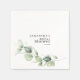 Anpassa vår moderna pappra napkin-mall för möhippa av eukalyptus-bladlöv för förbröllopsfesten. Med en minimalistisk utformning med vattenfärgat grönt löv. Perfekt för andra speciella händelser som bröllop-repetitionsinbjudningar, spara datum meddelande och mycket mer.