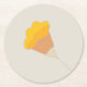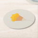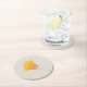 Denna papper underlägg en enda rödskål, gult- och orange-blomma med pennkonturer i mitten, på en plan grått yta.
