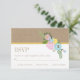 Rosa, blommor från vattenbruk och pappert svarskort eller svarskort från bröllopet OSA med ljusbruna farkoster som tittar pappert överst med en rand från guld och en illustration av en vintage av elegant, akvblått och ljusare rosa i det övre gula blommor. Denna moderna blommigt med en vintage känner att bröllop-malldesign är perfekt för ett land, ett rustiskt vår eller ett bröllop under sommaren. Välj en av våra pappra typer med struktur för bästa resultat.