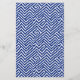 En tvål som omsluter lakan med ett blått och vitt geometriskt mönster.