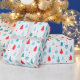 Papper för att stänga in Julgranar i kallt och modernt, blått, rött och rosa julomslag.