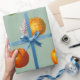 Vintage citrus botanical dekorativ kudde på blek teal grönt bakgrund.