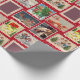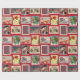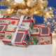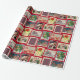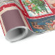 Denna färgstarka papper för julomslagning har åtta vackra, veteranliga julkort placerade ovanpå en festlig, röd bakgrund med snöflingor. söt, vintage helgdag bilder med dina vänner och din familj.