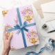 Detta vackra papper om omslagning av rosa är täckt av en våffelkon med blommor och söttreat inuti. Gultens band som säger bäst önskemål för den nya bruden. Glaskrämkoner med vattenfärg, chokladkaka med chip, sötsaker och fantastiska blommor.
