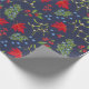Elegant papper med botaniska höstillustrationer. Ljus maple, holly, mistletoe och juniper mönster på mörk blått bakgrund.