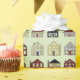 Kreativ Realtor-presentfigursättning eller verklig dekoration i gods agent party med färgfulla rader av konstnärliga hus.