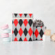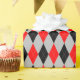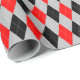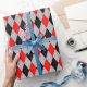 En papper designad med en röd, svart och grått argyle mönster i stor storlek.