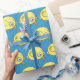 En söt och rolig tecknad av fågel på ljusblå bakgrund. Sömlös mönster.