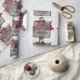Den här pappra designen har ett varmt och elegant Mors dag-tema. I mitten visas meddelandet "Lycklig Mors dag" på ett framträdande sätt i ett vitt serif-teckensnitt i snyggten mot en bakgrund av pulserande rosa och grönt löv, som är framtagen av ett mjukt gräns i mörk som ger en definition av blommigtens sammansättning. Bakgrunden innehåller en subtil bild av en kvinnas arm med fågeltatueringar, som ger en personlig, modern beröring. Utformningen blandar blommigtens skönhet med en uppriktig känsla, skapar den perfekt för att slå in presenter som är avsedda att fira och hedra mor.