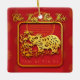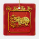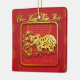 Glyasiatisk Papper skärning av en Ox till en kvadrat med samma design i svart för att skapa skuggskugga. Utformning på keramiska kvadratiska prydnadsföremål med gyllene önskemål på vietnamesiska + traditionella mönster i rött som bakgrund. Matchande hälsningskort, vykort för Helgdagar, inbjudan, hantverksutrustning, party och mycket annat... Perfekt för Vietnams nya år Ox 2021.