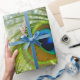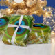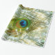 Glamorös helgdag papper med vacker fågelfjäder, silver tinsel och mousserande ljus