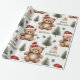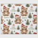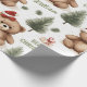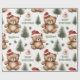 Söta nallar med vattenfärg i Santa Hats med gräs träd, litet presenter och mjukt snö. Anpassa med ett barns namn för ett mysigt, barnvänligt julomslag i gröntar med varm neutralt.