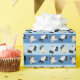 Den här toppen är söt och papper och har en tvåtonad blå rand-bakgrund. Den här pappra inslagningen matchar vår babydusch och födelsedagsinbjudningar och är en del av en babyduschsvit.