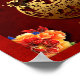 Utformning med traditionell kinesisk dekoration för blommigt + kinesiska lyktor + papper topp i mittläge med gren i persiko-träd + Gott nytt år på engelska och kinesiska. Utformning på liten poster. Matchande gratulationskort, vykort för helgdag och röd kuvert.