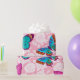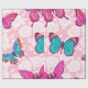 Sömlöst mönster med färgstarka fjärilar och ro mot rosans bakgrund, vektorillustration. Smögorna är rosa, blått och turkos. Ro är vitt. Stil är karikatyrartat.