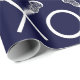 Kreativets lacrosse-presentfigursättning eller sportevenemangsdekoder med lax sticks och xo mönster på marin blå bakgrund.