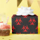 Varningssymbolen för biofarlighet figursatt i rött och svart.