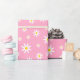 En mönster av vita blommor av daisy med gult mitten på rosan.