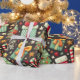 sömlöst mönster med festliga ikoner som inslagna presenter, Julgranar, polkagrisar och stjärnor. Perfekt för helgdag-temat-design med ett glatt, dynamiskt stil.