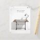 En vintage är skrivbord med en klassisk skrivbordslampa och en tom lakan-papper på en isolerad vit bakgrund och redigerbar text som lyder "Njut av en tom sidas frihet..".
