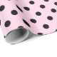 Rosa och svart polkpunktsomslagning papper. Anpassningsbarnas bakgrund färg bakom polkadoterna mönster. Underbar polkadoktad presentfigursättning för födelsedagen, Bröllop och Julklapp. Ändra kvantiteten för att få den billigaste prisa per roll.
