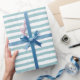 Papper rullning av vattenfärg Rand Teal Wrapping Presentpapper