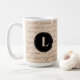 Gör anspråk på ditt kaffe med elegant personlig kaffe mugg. Den har en anpassningsbar monogram inledningsvis i en svart cirkel på en bakgrund som består av ett antikt brev i vacker, handskriven kalligrafi. En perfekt-gåva till en författare eller läsare.