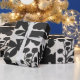 papper med en svart och vit blommigt. En kollage av svarta blommor på vit mark.