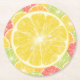 Den tunga pappra massan underlägg har en stor del av en citron över en kollage av citroner, limefrukter, orangar och grapefruktskivor. En roligt som tillägg till din sommarhemsdekoration eller ge som gåva.
