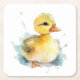 En söt papper underlägg med en vattenfärgsillustration i baby anka.