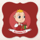 Pappra underlägg med en illustration av ett sött, leende svart flicka eller pojke från lycklig, baby bär röda och vita kläder och håller en present. Med redigerbar textmall för ditt namn eller meddelande utformar julklappar med röd bakgrund helgdagar
