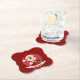 Pappra underlägg med ett exempel på ett sött leende lycklig flicka eller pojke, baby bär röda och vita kläder och håller en present. Med en redigerbar textmall för ditt namn eller meddelande utformar julklappar med röd bakgrund helgdagar
