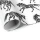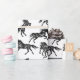 Slimmad och ren svart och vit förpackning papper med en flock av klotthästar som galopar och har roligt - perfekt för gåvor till dina galna hästvänner!
