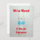 Lustigt Vi har flyttat pappert vykort för flytta av rullar. Witty humor återspeglas här. Ordet "det var ett Akut" på brev framför kortet. Upphovsrätt Marg Seregelyi Fotography.